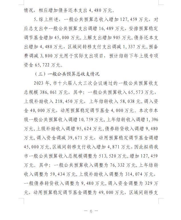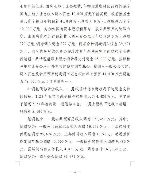 關(guān)于《連州市2023年財(cái)政預(yù)算調(diào)整方案(草案)》的報(bào)告