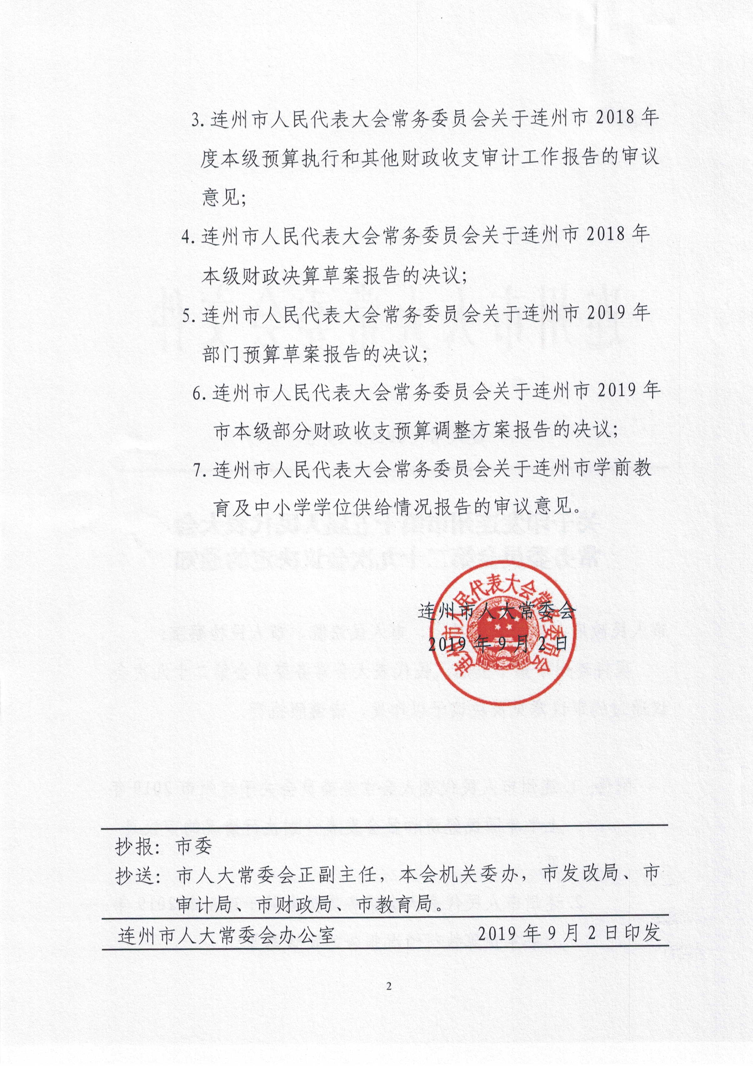 連州市2019年上半年預算執(zhí)行情況報告人大決議