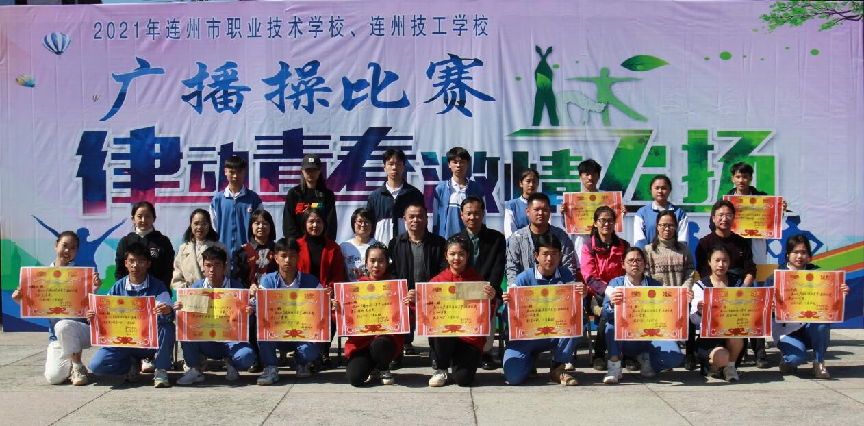 連州市職業(yè)技術(shù)學(xué)校認(rèn)真貫徹落實(shí)習(xí)近平總書記重要指示精神,扎實(shí)開展陽光體育活動,堅(jiān)持每天課間跑操、廣播體操以及形式多樣的體育比賽活動。一年一度的“廣播體操比賽”更是全體師生享受體育、強(qiáng)健體魄的節(jié)日盛會。今年的廣播體操于2021年11月11日舉行。全校學(xué)生參與人數(shù)達(dá)到1616人次,老師參與人數(shù)66人次。此次比賽通過花樣入場、廣播體操比賽兩個項(xiàng)目展示各班的風(fēng)采,不但提升學(xué)生了對于體育項(xiàng)目、文娛項(xiàng)目的熱愛高度,更在排練、鍛煉、比賽過程中達(dá)到了體育訓(xùn)練的目的。