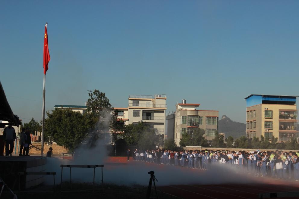 為了確保演練活動(dòng)落到實(shí)處,學(xué)校專門成立了演練活動(dòng)領(lǐng)導(dǎo)小組,制定詳細(xì)的演練實(shí)施方案。演練前,班主任在班級布置落實(shí)演練的時(shí)間、地點(diǎn)、內(nèi)容、疏散路線、程序、紀(jì)律、安全要求。下午3:00警報(bào)響起,老師立即組織學(xué)生進(jìn)行疏散逃生演練,組織本班學(xué)生排隊(duì)。撤離時(shí),學(xué)生都用濕毛巾捂住鼻子和嘴巴,彎著腰,排成兩列,順著樓梯的扶手,扶著墻壁,在樓層負(fù)責(zé)老師的指揮下,按疏散路線有秩序地迅速撤離,集合到學(xué)校操場上,撤離速度極快。接著后勤科負(fù)責(zé)老師現(xiàn)場模擬、示范滅火器的使用方法。