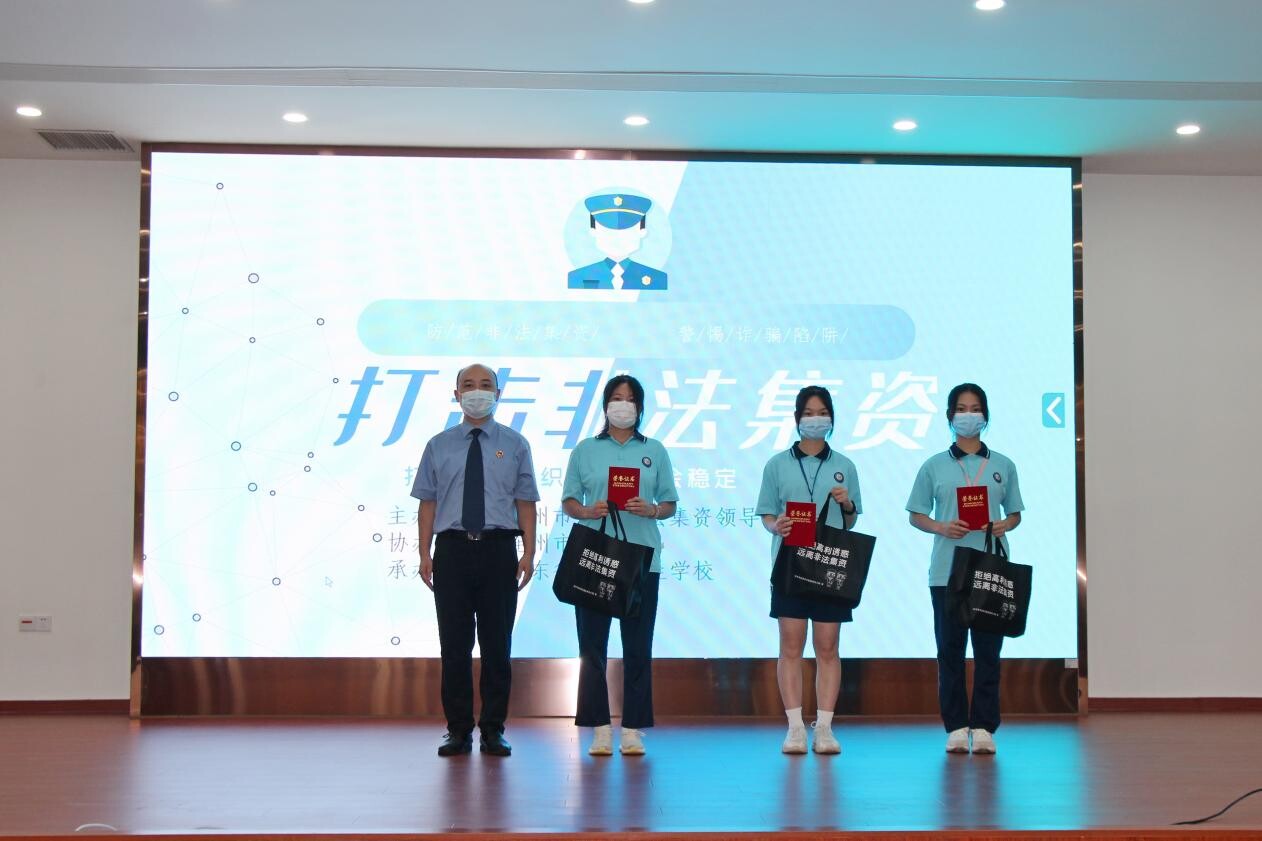 為了營造良好的防范非法金融活動(dòng)輿論氛圍,提高學(xué)生對(duì)非法金融活動(dòng)的認(rèn)識(shí)和抵制能力,2022年6月29日,由連州市處置非法集資領(lǐng)導(dǎo)小組主辦、連州市教育局協(xié)辦的2022年防范非法集資宣傳月活動(dòng)暨“守好錢袋子·護(hù)好幸福家”主題繪畫比賽頒獎(jiǎng)儀式在連州衛(wèi)生學(xué)校舉行。連州市檢察院黨組成員、副檢察長、連州衛(wèi)校法治副校長潘文杰、連州市教育局董繩祥主任、連州市人民法院法官助理梁舒恬、連州衛(wèi)校副校長唐英輝出席活動(dòng)。