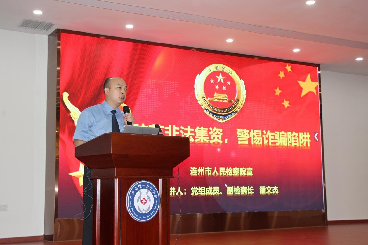 “防范非法集資,警惕詐騙陷阱?!边B州市檢察院黨組成員、副檢察長、連州衛(wèi)校法治副校長潘文杰在集資詐騙罪的基本概念、集資詐騙罪的客觀要件、集資詐騙罪的體現(xiàn)以及案例分析四個(gè)方面為同學(xué)們詳細(xì)地闡述了集資詐騙罪的相關(guān)內(nèi)容。并提醒我們在生活中參與集資的時(shí)候要注意辨識(shí)合法融資與非法集資,依法理性開展金融投資活動(dòng)。