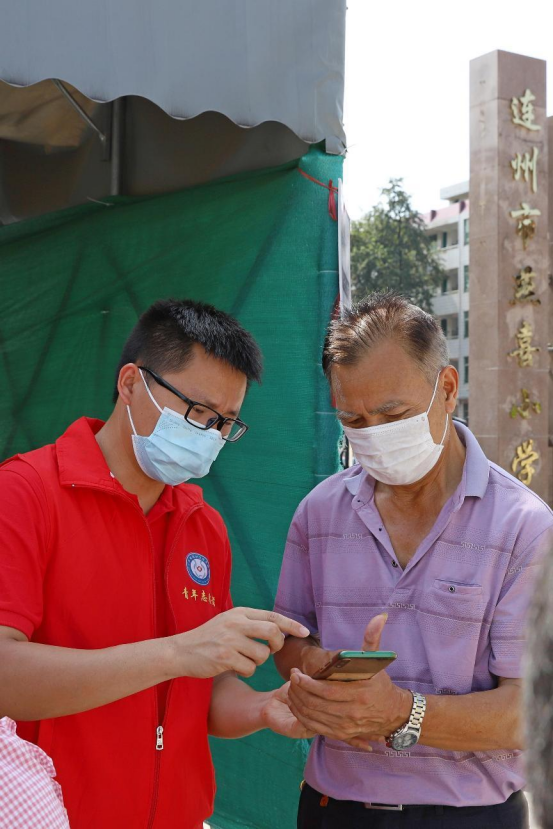 連州衛(wèi)生學(xué)校志愿者在掃碼登記信息