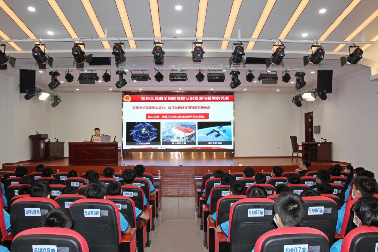 陳志前同志,在此次講座中運用圖文并茂的方式,向大家講述了四個板塊的內容:一、如何從戰(zhàn)略全局的高度認識富國與強國的關系;二、我國地緣情況及周邊安全形勢;三、臺海形勢;四、鼓勵青年學子要踴躍報名參軍,在國防和軍隊建設中實現(xiàn)人生理想。