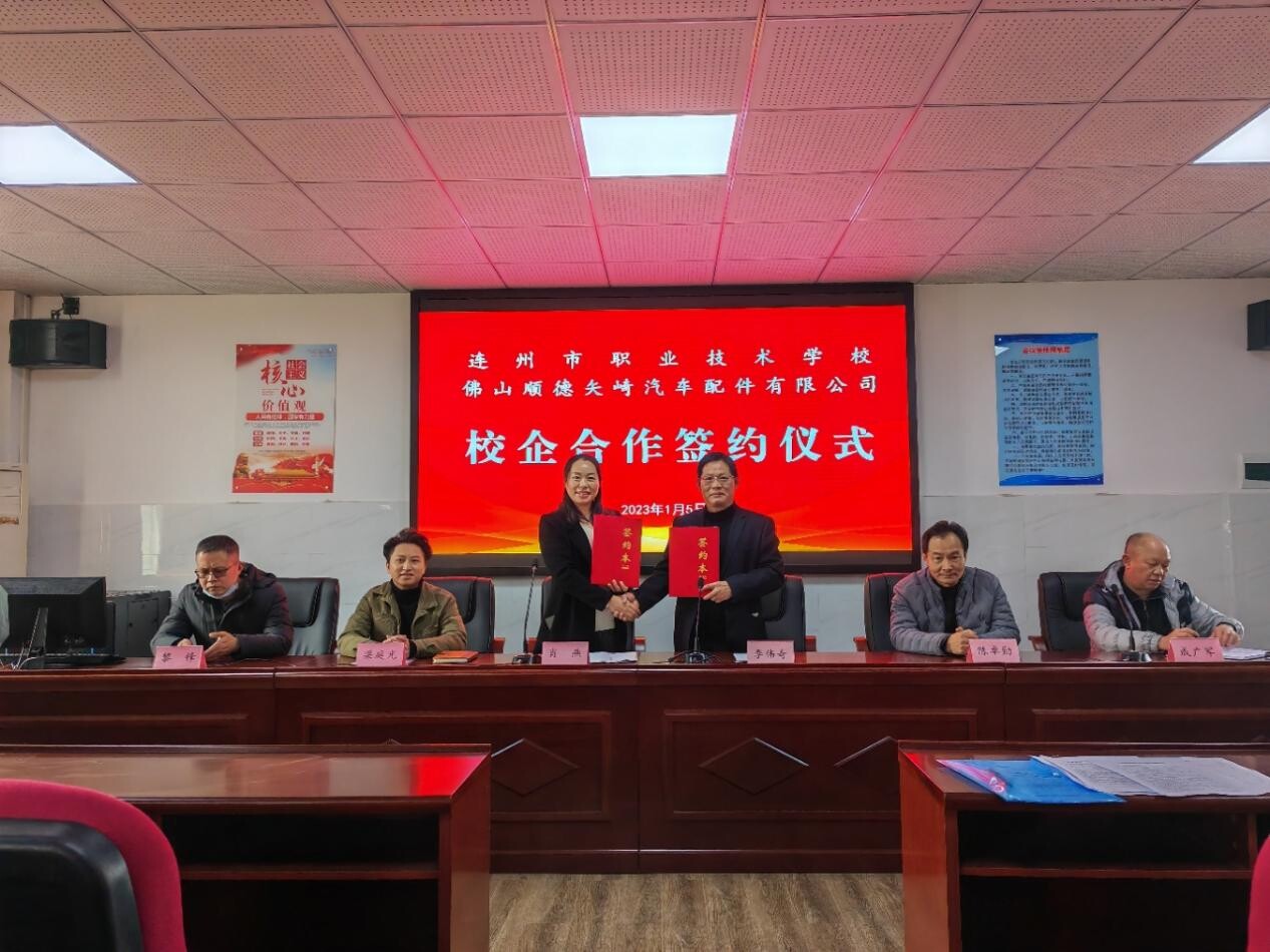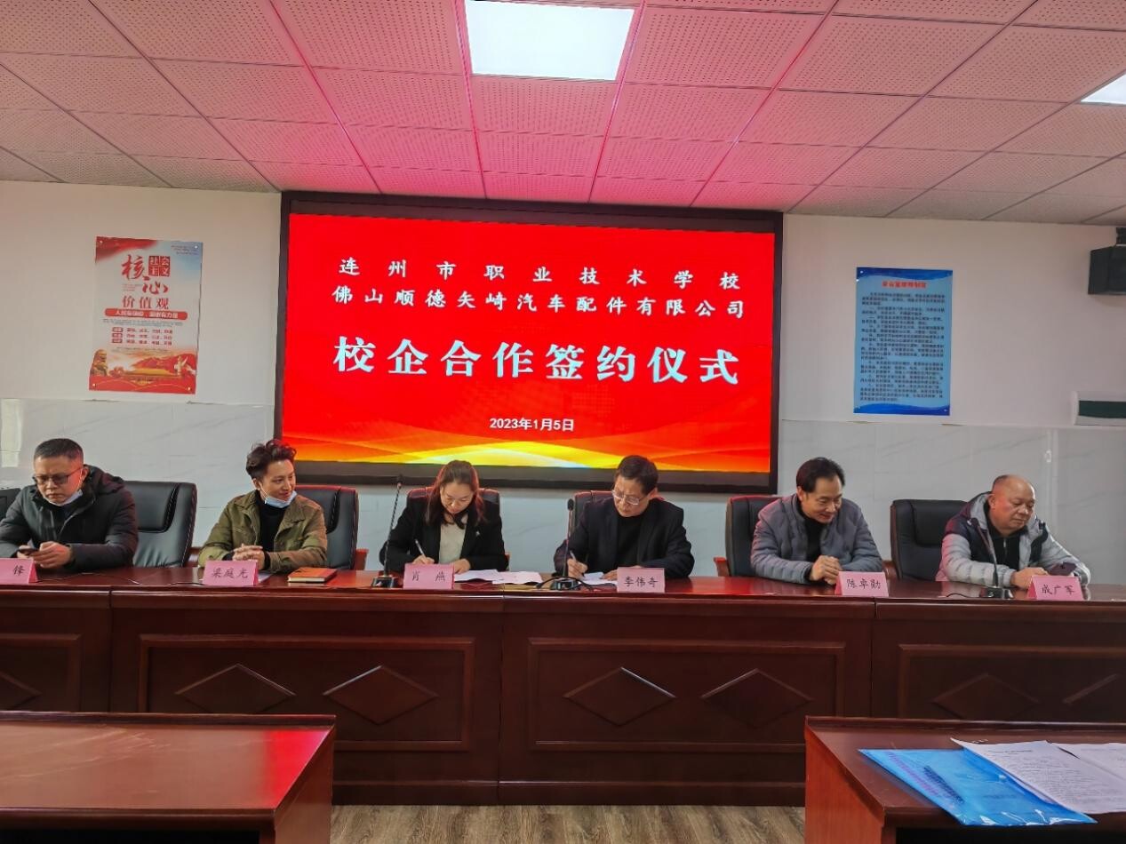 2023年1月5日下午,連州市職業(yè)技術(shù)學(xué)校與佛山順德矢崎汽車配件有限公司在綜合樓607會(huì)議室舉行校企合作簽約暨揭牌儀式。學(xué)校黨總支書記李偉奇和副校長(zhǎng)陳卓勛、成廣軍、黎鋒帶領(lǐng)該公司總務(wù)人事部科長(zhǎng)肖燕、總務(wù)部人事部系長(zhǎng)梁庭光等人共同參觀學(xué)校實(shí)訓(xùn)室并出席簽約儀式。此次校企合作將有效促進(jìn)產(chǎn)教深度融合,打造特色職業(yè)教育模式,培養(yǎng)高素質(zhì)高技能人才,提升就業(yè)率和提高創(chuàng)業(yè)水平。