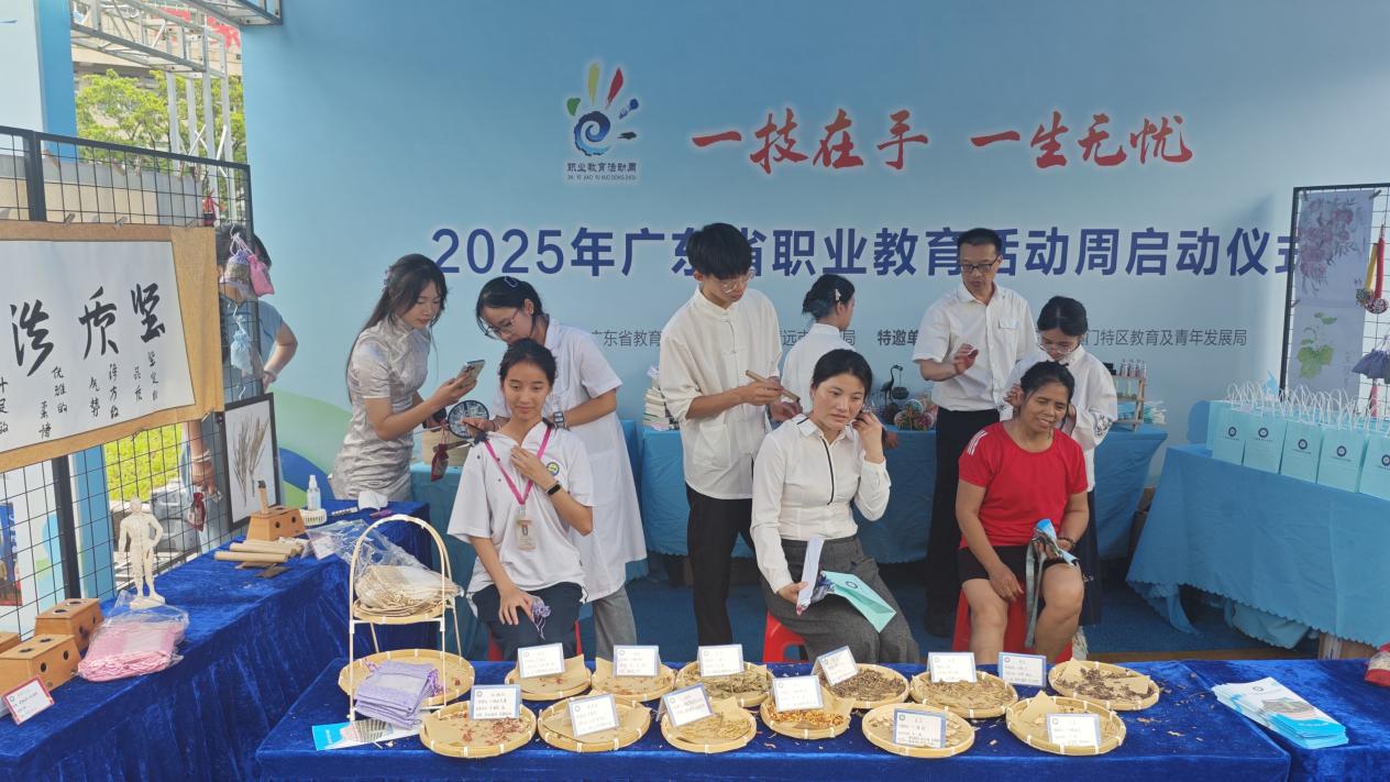 5月16日,學(xué)校師生代表前往清遠(yuǎn)體育館參加2025年廣東省職業(yè)教育活動(dòng)成果展示活動(dòng)。靜態(tài)展區(qū)展示師生們利用專業(yè)知識(shí)精心制作的中藥標(biāo)本、繪畫(huà)作品?;?dòng)區(qū)中,香囊制作體驗(yàn),讓體驗(yàn)者從中體會(huì)到中醫(yī)藥的獨(dú)特魅力;推拿、艾灸的展示,讓體驗(yàn)者親身感受傳統(tǒng)醫(yī)學(xué)的神奇功效;海姆立克急救法展示,將實(shí)用技能傳遞給公眾,增強(qiáng)公眾應(yīng)急救護(hù)能力?;顒?dòng)全方位展示了職業(yè)技能的價(jià)值與魅力,生動(dòng)詮釋了 “一技在手 一生無(wú)憂” 的深刻內(nèi)涵。