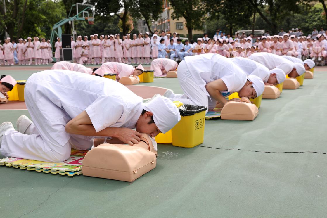 “患者意識喪失,立即實施心肺復(fù)蘇!”在心肺復(fù)蘇技能展示環(huán)節(jié),學(xué)生通過模擬急救場景,展現(xiàn)扎實的專業(yè)功底。在靜脈輸液技能展示環(huán)節(jié),學(xué)生嚴(yán)格遵循無菌操作原則,每一個步驟都有條不紊、規(guī)范精準(zhǔn)。學(xué)生們還進(jìn)行了風(fēng)采展示,獲得陣陣掌聲。從精準(zhǔn)的靜脈穿刺到規(guī)范的無菌操作,從人文關(guān)懷溝通到團(tuán)隊協(xié)作處置,每一個細(xì)節(jié)都彰顯出護(hù)理事業(yè)的嚴(yán)謹(jǐn)與溫度。