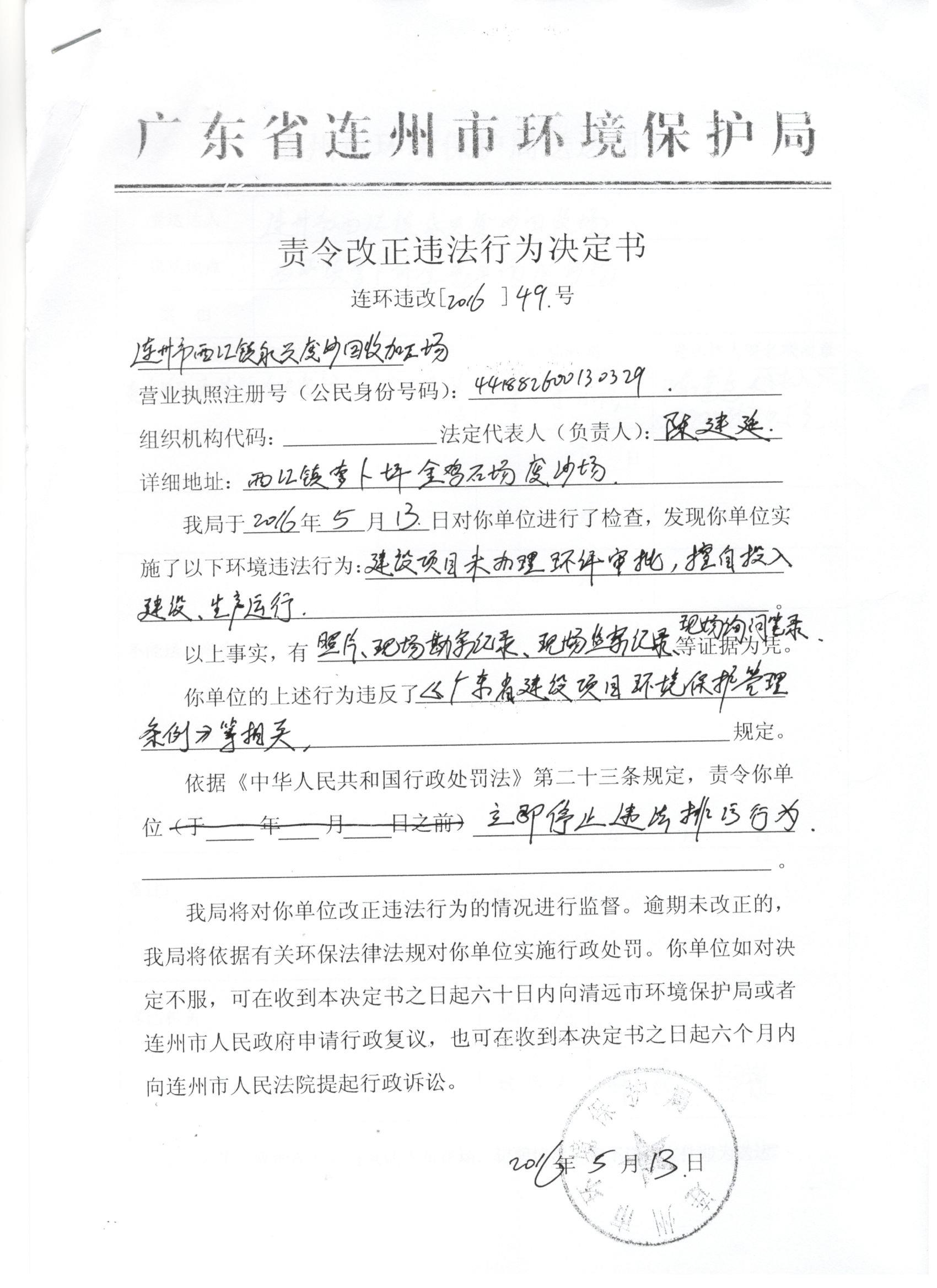 來(lái)源:連州市環(huán)境保護(hù)局 發(fā)布時(shí)間:2016-05-13 10:19:00 字體大小: 瀏覽次數(shù):-