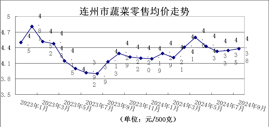 9月份,我市蔬菜價(jià)格微升,農(nóng)貿(mào)市場(chǎng)監(jiān)測(cè)的30種主要蔬菜零售價(jià)格“15升5平10降”,蔬菜類(lèi)平均零售價(jià)格為4.38元/500克,環(huán)比升0.69%。其中,葉菜類(lèi)零售價(jià)格為4.45元/500克,環(huán)比升1.14%,花菜類(lèi)零售價(jià)格為3.96元/500克,環(huán)比升6.17%,瓜菜類(lèi)零售價(jià)格為4.20元/500克,環(huán)比降0.24%,根莖類(lèi)零售價(jià)格為4.65元/500克,環(huán)比降0.21%。