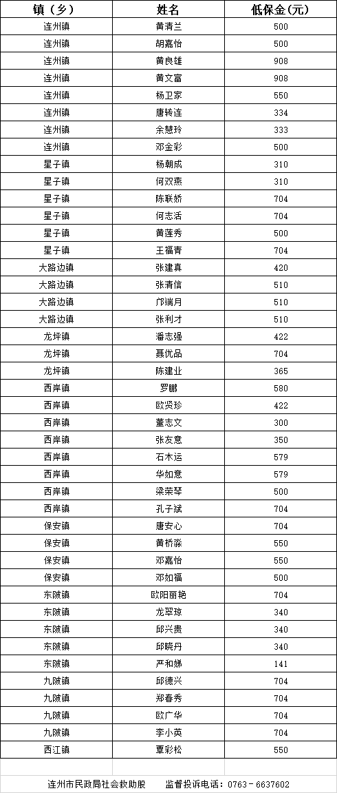2023年10月新增低保對象名單