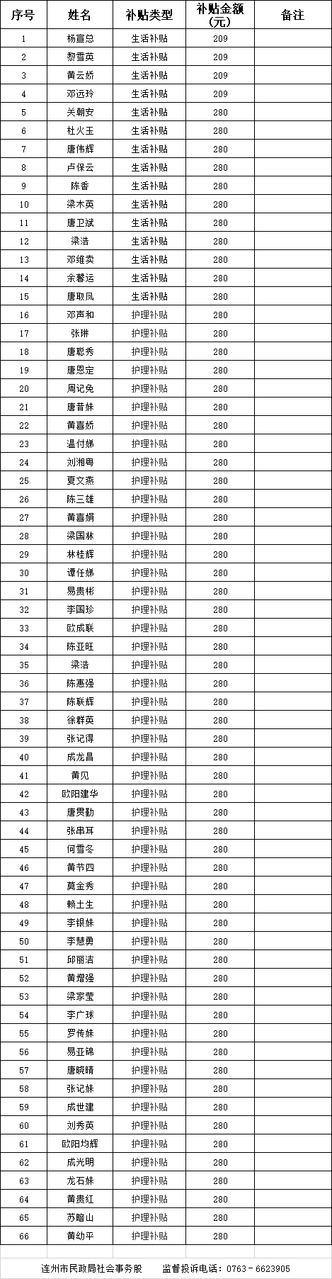 連州市2025年5月新增殘疾人兩項(xiàng)補(bǔ)貼名單