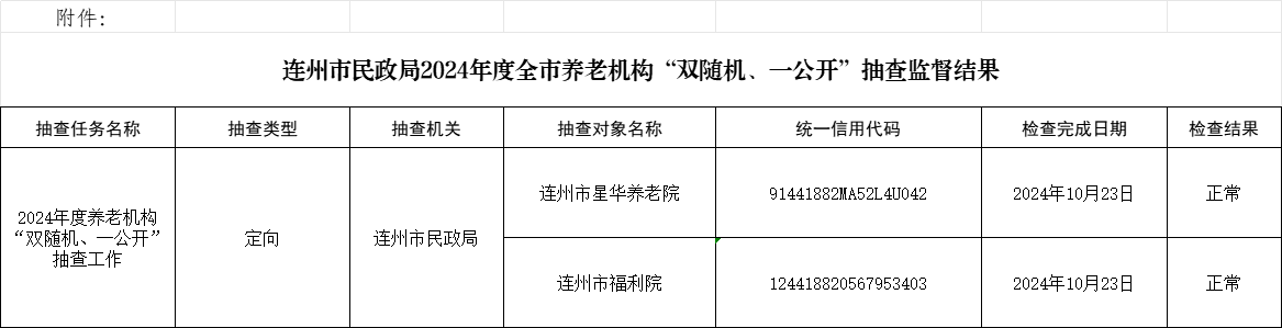 連州市民政局關(guān)于2024年度全市養(yǎng)老機構(gòu)“雙隨機、一公開”抽查監(jiān)督結(jié)果的公示