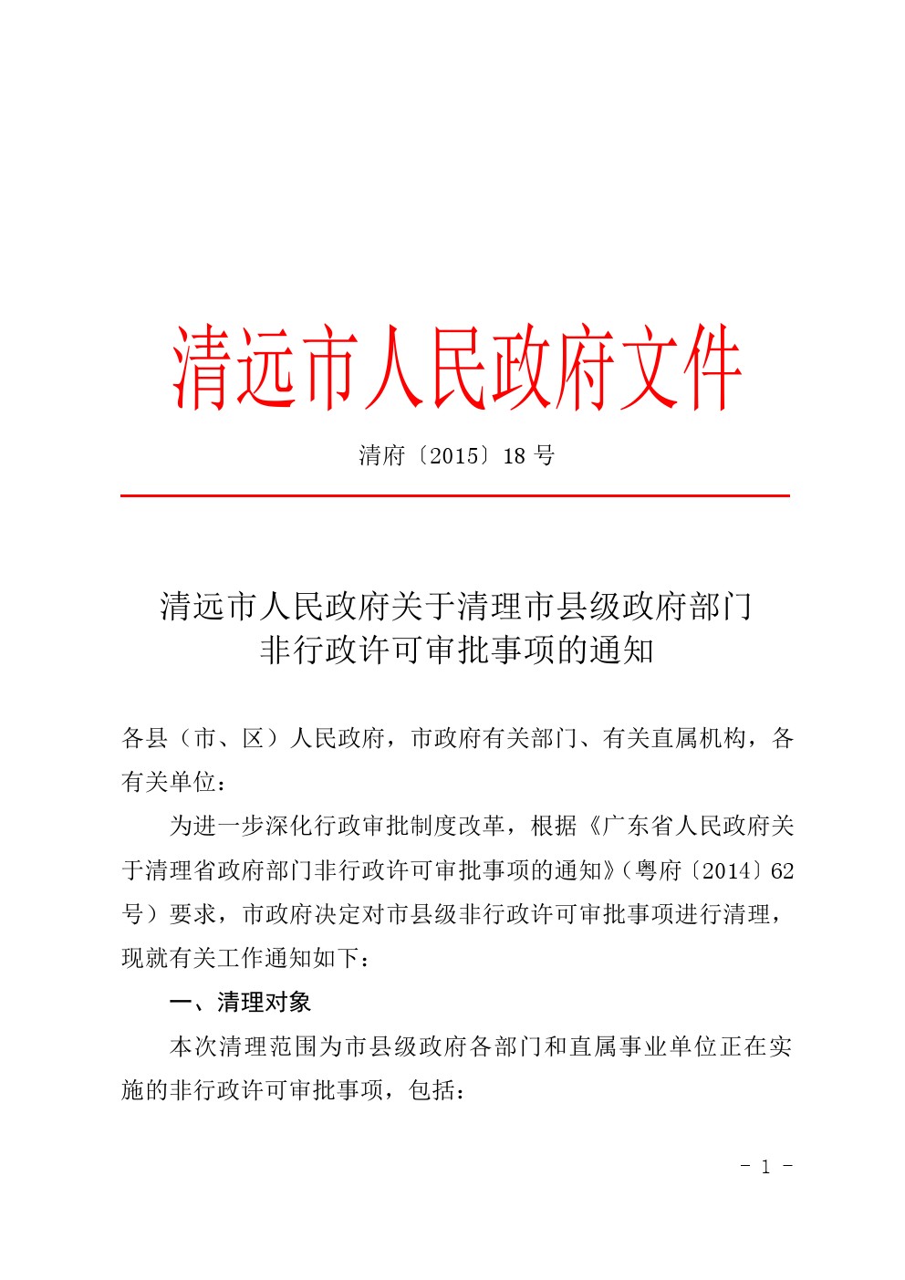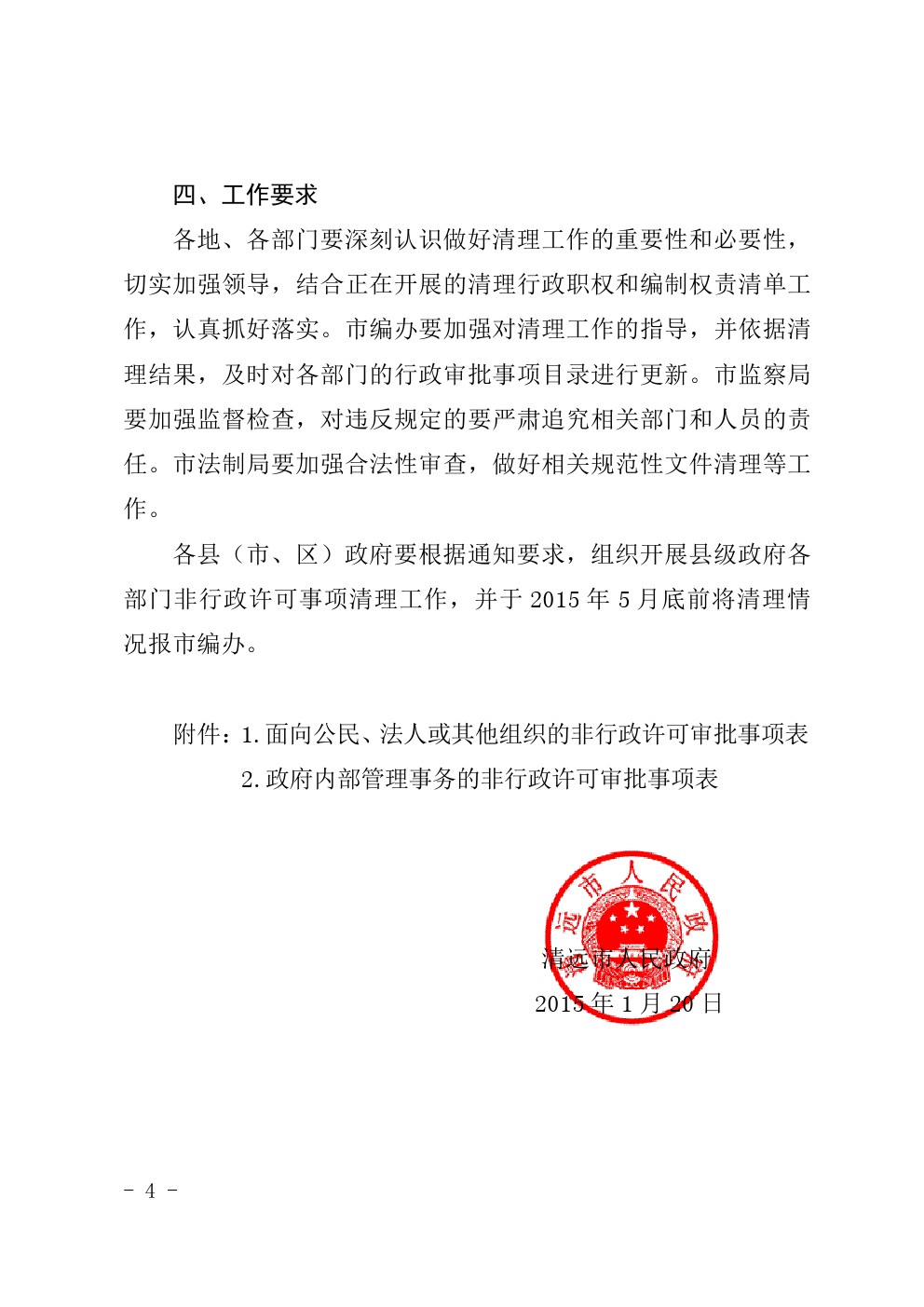 清遠市人民政府關于清理市縣級政府部門非行政許可審批事項的通知