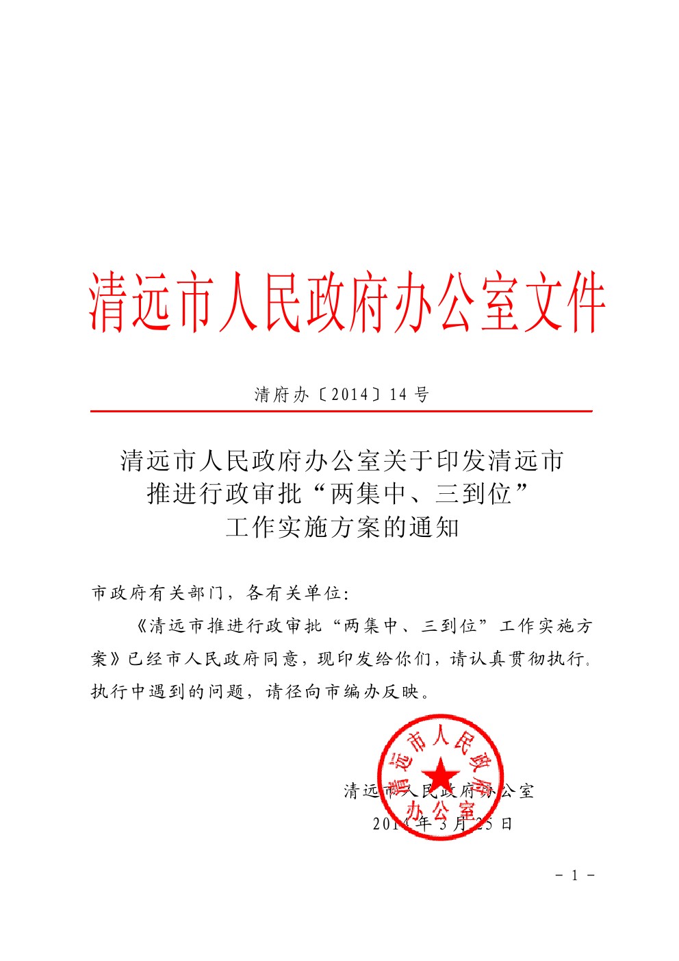 清遠(yuǎn)市人民政府辦公室關(guān)于印發(fā)清遠(yuǎn)市推進(jìn)行政審批“兩集中、三到位”工作實(shí)施方案的通知