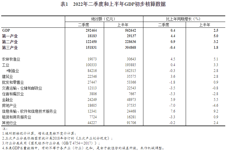根據(jù)有關(guān)基礎(chǔ)資料和國內(nèi)生產(chǎn)總值(GDP)核算方法,經(jīng)初步核算,我國2022年二季度和上半年 GDP核算結(jié)果如下。
