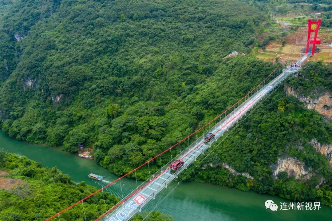 擎天玻璃橋坐落于湟川三峽——龍?zhí)抖燃賲^(qū),建在秦漢古道水路上,橫跨湟川三峽陡崖峭壁,盡覽粵北最大瀑布群,憑借別出心裁的結(jié)構(gòu)和超凡脫俗的外觀,已成為連州市高速創(chuàng)造“歷史文化之旅、自然景觀之旅、國(guó)際通道之旅”的標(biāo)志性建筑,是連州旅游的新名片。