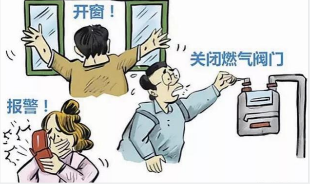 若發(fā)現(xiàn)室內(nèi)燃氣設施或燃氣器具等發(fā)生泄漏,請按以下步驟操作:迅速關閉氣源總閥門;切斷戶外總電源;熄滅一切火種;迅速打開門窗;嚴禁開、關任何電器或使用手機,應到室外撥打燃氣公司搶修、搶險電話。