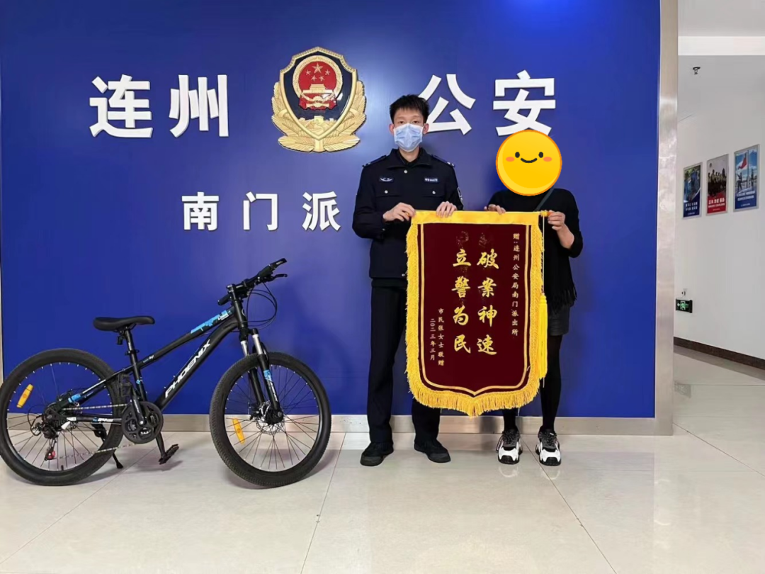 3月21日,南門派出所將自行車發(fā)還給事主張女士,張女士特送來一面寫著“破案神速,立警為民"的錦旗,對南門派出所工作效率表示高度贊揚(yáng)。