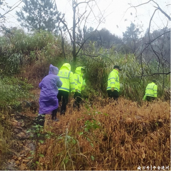 由于當(dāng)時(shí)天空已經(jīng)開(kāi)始下起了蒙蒙細(xì)雨,加上老人走失地點(diǎn)地形復(fù)雜、山路崎嶇,能見(jiàn)度極低,給搜救工作帶來(lái)了極大的困難。雖然山路地濕路滑,但搜救人員不敢有絲毫懈怠,他們?cè)谧呤Ю先丝赡芡窘?jīng)的道路上,不停呼喊老人姓名,進(jìn)行地毯式搜索直至深夜,因?yàn)橐归g可視范圍小,一直沒(méi)有發(fā)現(xiàn)老人的蹤跡??紤]到天氣寒冷再加上老人體弱,九陂派出所第一時(shí)間向指揮中心請(qǐng)求支援,增派警力進(jìn)一步擴(kuò)大搜救范圍。