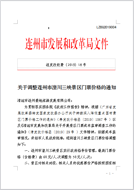 關(guān)于調(diào)整連州市湟川三峽景區(qū)門票價(jià)格的通知