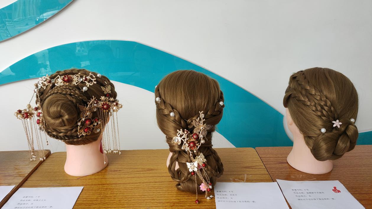 在美容產(chǎn)業(yè)學(xué)院里,開展美甲競賽和盤發(fā)競賽,同學(xué)們經(jīng)過創(chuàng)意設(shè)計,完成了甲面彩繪、立體雕花等作品,并結(jié)合傳統(tǒng)盤發(fā)技藝與現(xiàn)代造型理念,完成古風(fēng)發(fā)髻、晚宴發(fā)型等作品,同時還開展了美甲、頭模和美容禮儀展示,充分展示產(chǎn)教融合的建設(shè)成果。